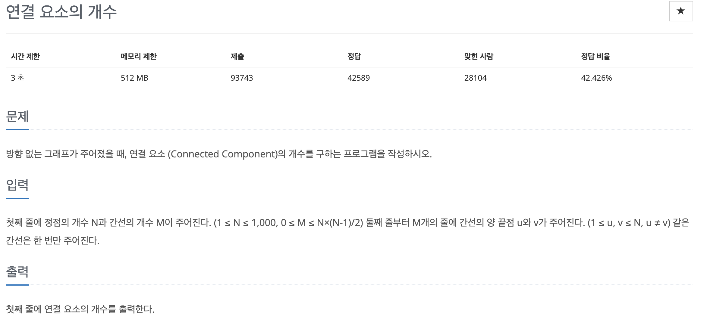 - 문제에서 연결요소란 Edge로 연결된 Node의 집합을 의미한다. (미니 그래프로 생각함)