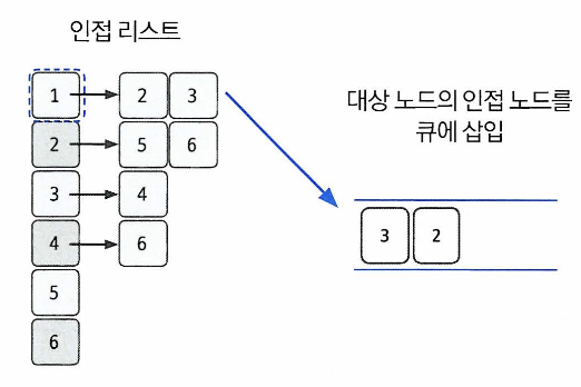 b. 꺼낸 노드의 인접노드를 다시 큐에 삽입한다.
