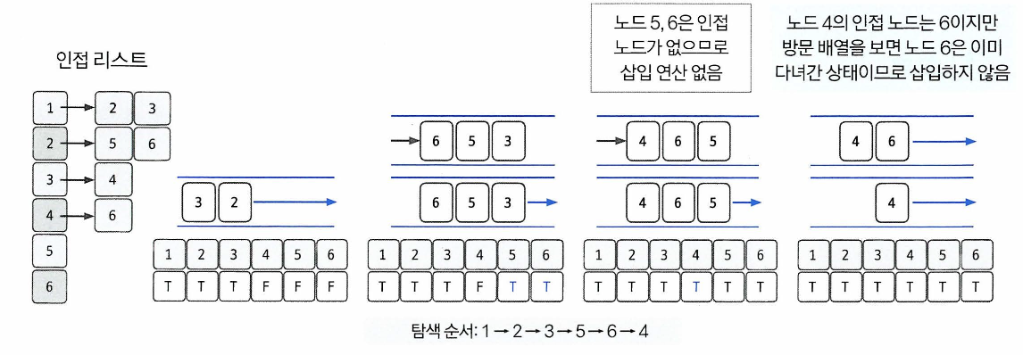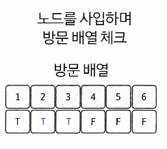 이 경우 인접 노드를 방문 배열과 대조하여 살펴본다.