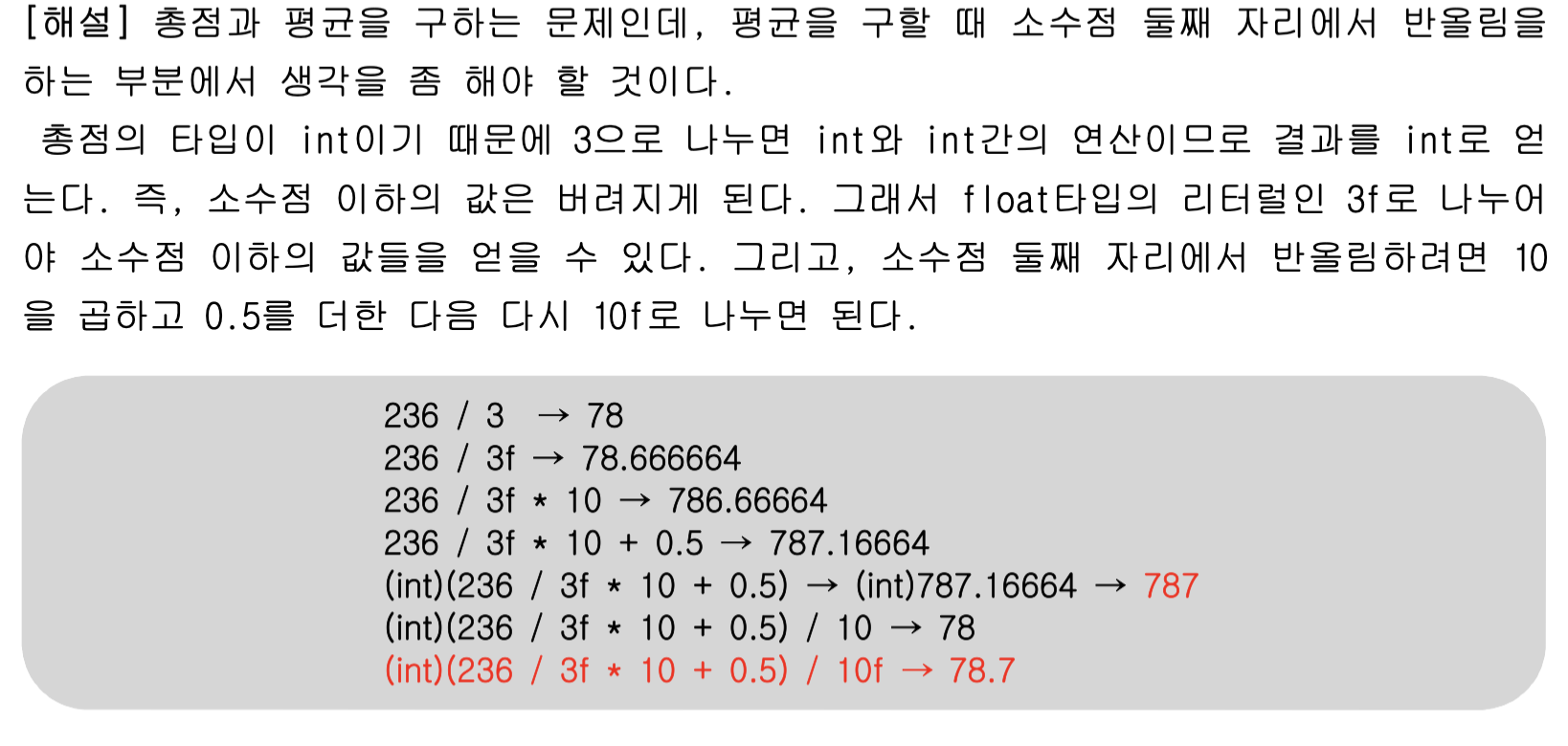 - 남은 소수들을 없애주기 위해 정수형으로 형변환을 하면 된다,