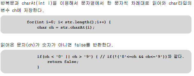 인터넷에서 아스키코드 값으로 비교하는 내용이 없어서 래퍼클래스 함수를 이용해서 숫자인지에 대해서 판단하는 메소드를 이용했다.